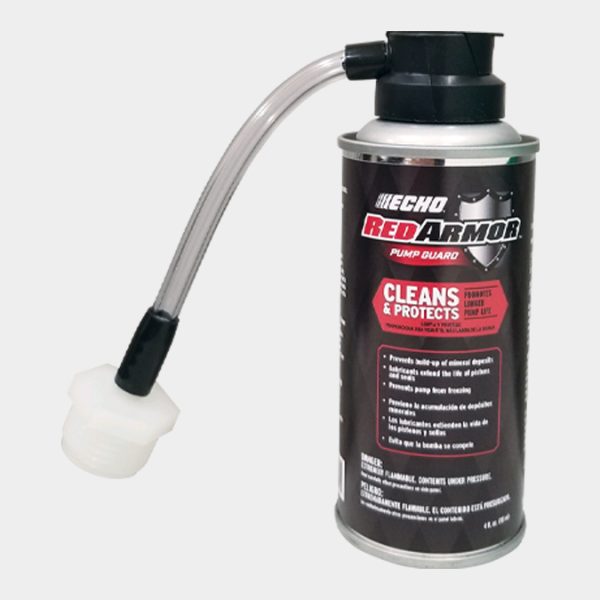 ECHO’s Red Armor® Pump Guard protects pressure washer pumps, pistons and seals. The special formulation delivers superior lubrication for all the moving parts and prevents buildup of harmful water and mineral deposits. Red Armor® Pump Guard also provides anti-freeze protection.